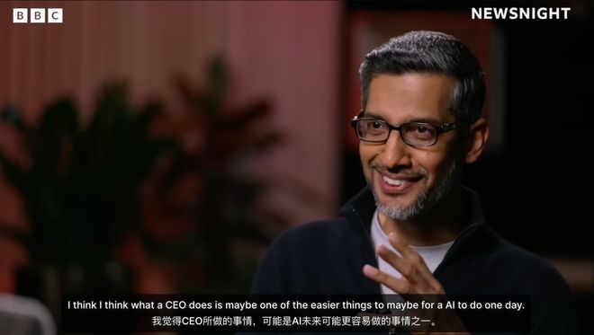 谷歌CEO桑达尔·皮查伊最近接受BBC采访时,抛出了一个观点:CEO的工作,也许是AI最容易胜任的事情之一。