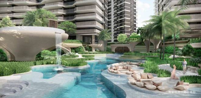◆活力之泉:以顶奢酒店为灵感,打造约5000平的超体量下沉庭院。整个活力之泉由亲子水域、层叠泳池、叠瀑水景,以及多层次立体绿化构成,融汇近20个多功能泳池节点,足不出园即享水岸度假时光。