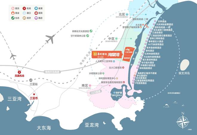 三亚海棠湾被定位为“国家海岸”,作为世界级的旅游度假区和度假天堂,承载国家热带滨海旅游品牌形象。规划一点·一带·三区,坐拥千亿级的娱乐、休闲、康养、购物、教育等资源配套。
